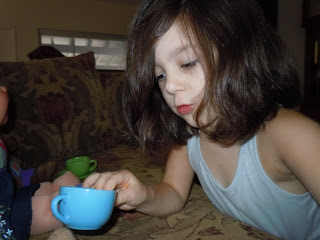 Ella loves to play restaurant and pizza parlor. Last week our teddy bear picnic transformed into a teddy bear diner as Ella acted as waitress (writing orders - yeah literacy!) and head chef.